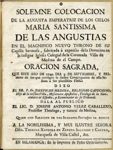 Solemne colocación de la Augusta Emperatriz de los Cielos, María Santíssima de las Angustias…