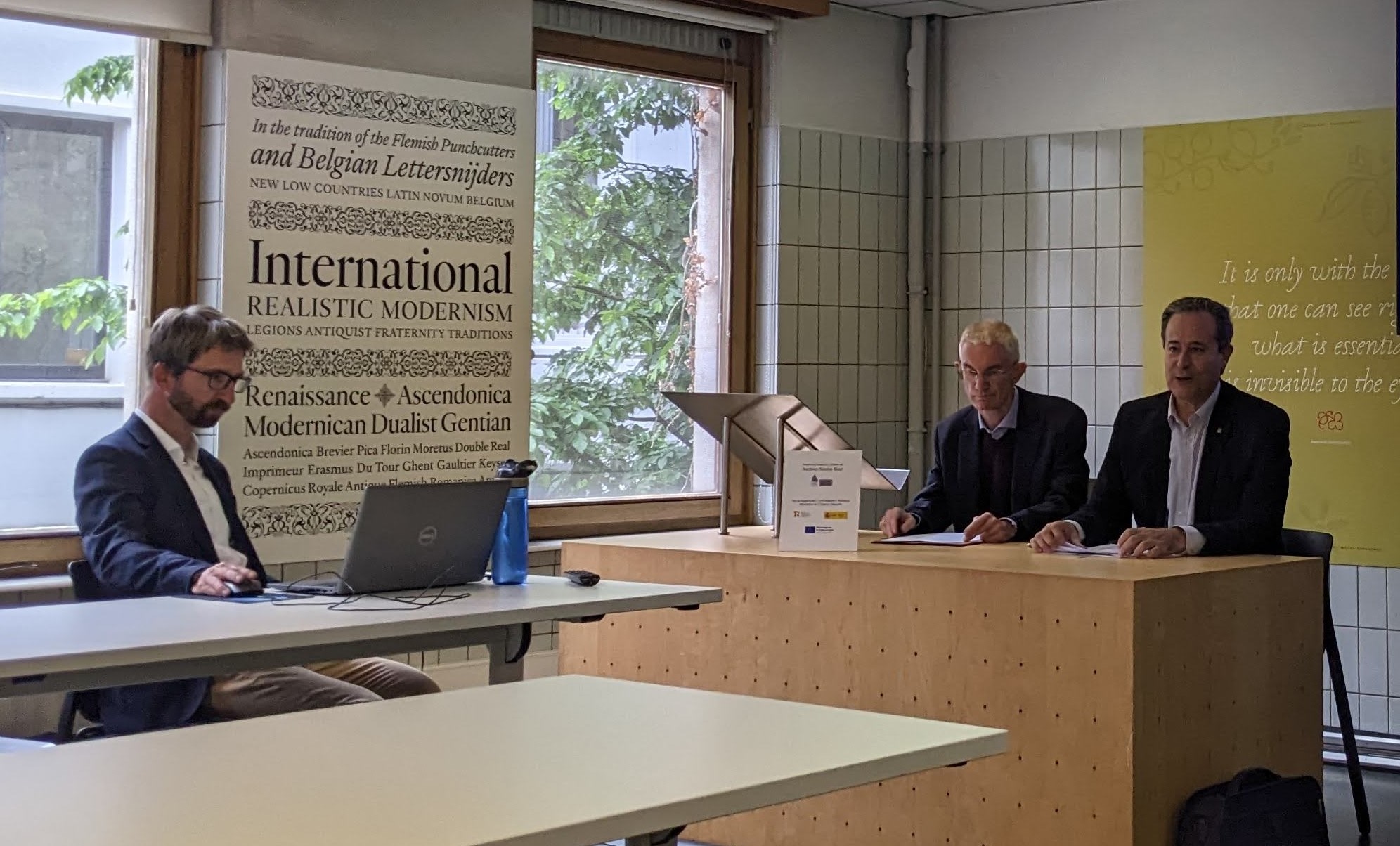 Dª Tada Bastida Eizaguirre, Consejera de Cultura de la Embajada de España. Traducción de Paul van den Broeck (Museo Plantin Moretus, Amberes, 22 mayo 2023)