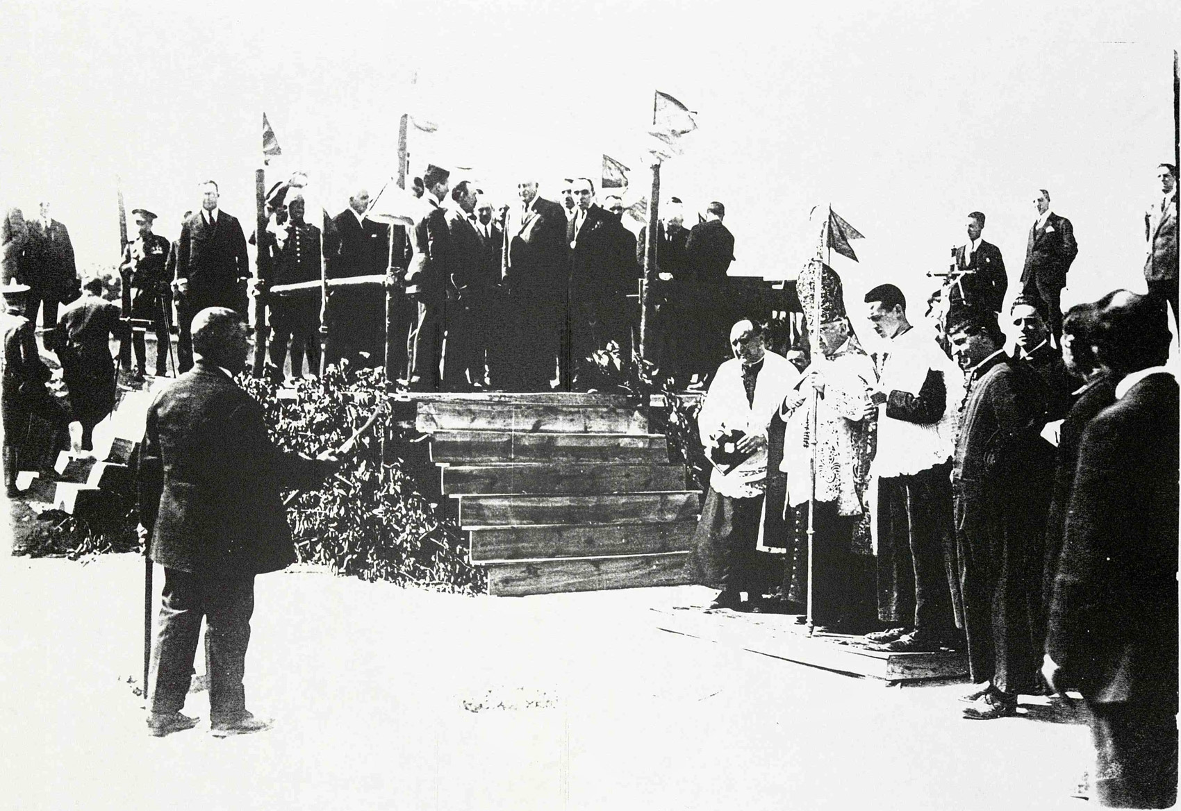 En el acta oficial de este acto el letrado-secretario del Ayuntamiento refiere los nombres de las autoridades nacionales, alcalde y concejales que forman la “Comisión inspectora de las obras”, técnicos y concesionarios de las mismas, todos ellos presentes en la explana del Castillo de la Mota; y hace mención de la bendición de las obras por parte del arzobispo de Valladolid, la “tongada de mortero de cemento” que arroja el presidente del Consejo de Ministros a una cavidad dispuesta en la solera del futuro depósito de aguas, donde también se entierra una caja de zinc con un ejemplar del semanario local “La Voz de Castilla” y los diarios “El Norte de Castilla” y Diario Regional” y tres monedas. Al final del texto firman todos los intervinientes.