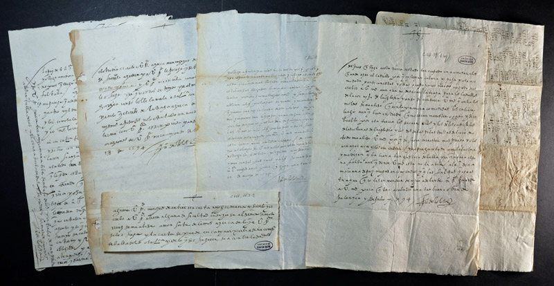 Las dos cartas siguientes están dirigidas a Fr. Antonio de Sosa, que se encuentra en Salamanca, desde Medina del Campo (15 de enero de 1594) y Villagarcía de Campos (18 de enero de 1594) en cuya colegiata y colegio de jesuitas está trabajando. Entre otras muchas cosas -algunas de carácter familiar que prueban la estrecha amistad entre ambos religiosos-, comunica al agustino que ha visitado la obra y ha quedado muy satisfecho; además, que ha ideado una traza, que entendemos es para una parte del corral y la zona de aposentos, “que ha de ser muy buena y si salgo con ella aorraré mas de quatro mil ducados”; esto quiere comentarlo con él antes que con ningún otro responsable de la obra.