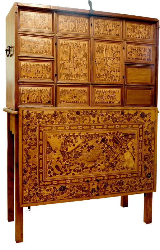 Madera de pino, nogal y otras, taraceadas