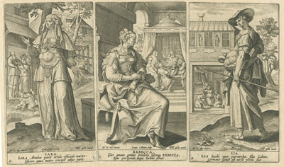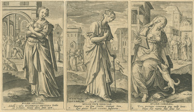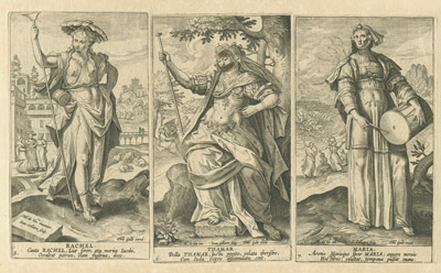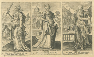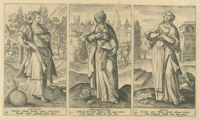 Esta colección de las protagonistas femeninas del Antiguo Testamento acusa la decisiva influencia del manierismo italiano, encarnado en este caso en el conocido artista flamenco Maarten de Vos, a quien corresponden los diseños de las estampas. Tras la portada con la que se abre la serie, aparecen representadas -en dobles láminas de tres figuras por cara- un total de veinte mujeres: Eva, Sara, Rebecca, Lía, Rachel, Thamar, Maria, Rahab, Débora, Iahel, Mater Sampsonis, Anna, Ruth, Abigail, Abelae Mulier, Sara, Judith, Hester, Susana y Mater Machab.
