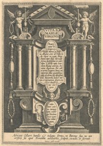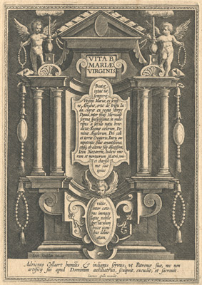 Tras el frontispicio de la serie, formado por un retablo clasicista de un cuerpo central coronado por ático triangular y flanqueado por columnas pareadas, se narra en dieciséis imágenes los principales episodios la vida de la Virgen María (en este original de la Colección Espínola, las escenas aparecen agrupadas por parejas en láminas dobles), a saber: su concepción mística representada en la escena del Abrazo de San Joaquín y Santa Ana ante al puerta dorada y, junta ella, el Nacimiento de la Virgen; la Presentación de María en el templo y sus Desposorios con José; la Anunciación y la visita a su prima Isabel; la Adoración de los Pastores y la Circuncisión del Señor; la Adoración de los Magos y la Purificación de María; la Huida a Egipto y Jesús entre los Doctores; María al pie de la Cruz y el Tránsito de la Virgen; y, por último, la Asunción junto con la Coronación de María por la Santísima Trinidad. Muchas de estas escenas fueron tomadas como modelo iconográfico, repitiéndose su composición formal en numerosas obras posteriores. Todas ellas muestran la mano maestra de los Collaert, su depurada técnica y su gusto por los grandiosos escenarios llenos de imponentes personajes minuciosamente tratados. Asimismo se advierte el origen conceptual de Stradanus, artista flamenco cuya larga estancia en Florencia al servicio de los Médici y hasta el final de sus días, explica la elegancia y virtuosismo de las composiciones.