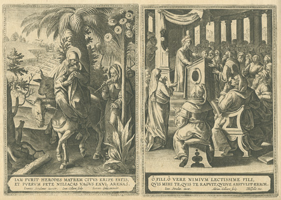 Esta colección de diecisiete estampas diseñadas por Ioannes Stradanus fueron grabadas: quince de ellas por Adriaen Collaert y las dos restantes por su hijo Ioannes (la Anunciación y la Huida a Egipto). De su edición y posterior distribución se encargó Ioannes Galle, miembro de la más importante saga de editores flamencos de su época, a la que pertenecieron, entre otros muchos, su padre Theodor (emparentado directamente con los grandes impresores Plantino y Moretus) y su abuelo Philips Galle, auténtico iniciador de la estirpe. Este mismo Ioannes Galle, que fue también grabador, llegará a ser Decano de la Gilda de San Lucas de su Amberes natal.