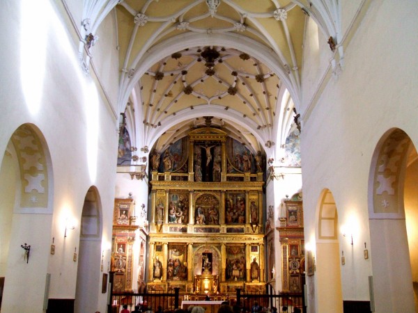 La disposición de su planta, aunque con conocidos antecedentes, establece el modelo luego seguido en las iglesias jesuíticas, con una sola nave rectangular provista de capillas laterales unidas mediante pasillos abiertos en los muros transversales, amplio crucero y cabecera cuadrada; tras ésta se sitúa la sacristía y junto a ella y, en comunicación directa con la iglesia por el crucero en el lado del Evangelio, el relicario. A pesar de lo novedoso del plano, las formas de cubrir los espacios son aún las propias del último gótico a base de bóvedas de crucería estrellada, pero presentando decoración ya renaciente; todas las capillas laterales se cubren con bóvedas de cañón de arco de medio punto. El coro está situado a los pies sobre el cuerpo de entrada al templo.