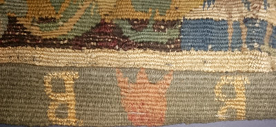 En una exposición sobre la figura de Simón Ruiz y el mundo de los negocios en la Europa del siglo XVI, parece obligada la presencia de un tapiz de los denominados de “verdura” o “boscaje”, característicos de la producción de los talleres de Bruselas durante la segunda mitad del siglo XVI. Su importación desde los Países Bajos a la Península fue uno de los más cotizados negocios de mercancías suntuarias a lo largo de aquella centuria y prueba de ello son las numerosas referencias que se hacen a su búsqueda y adquisición en las cartas mercantiles que han llegado hasta nosotros (de este asunto se ocupa César A. Manrique Figueroa, en «Las cartas de Amberes de Simón Ruiz, y su agrado por las tapicerías flamencas», en Congreso Internacional Imagen Apariencia. 19-21, nov. 2008, Murcia, Universidad, 2009). Una de las características de estas “tapicerías de Bruselas” –y a ella se refiere concretamente Simón Ruiz en varias de sus cartas, como “de su preferencia”- es la de estar enmarcadas por una cenefa muy ancha, a modo de gran orla o moldura de la escena central, en la que aparecen llenándolo todo figuras y personajes, motivos alegóricos, medallones, grutescos, etc.